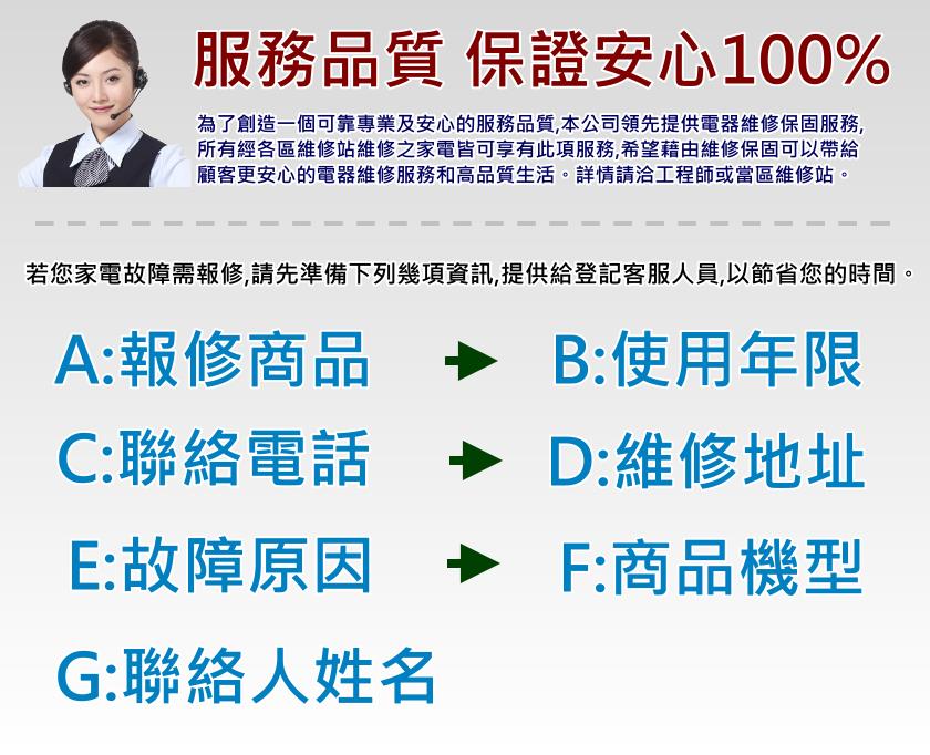 台灣各區服務夏普|聲寶服務站家電維修服務範圍:基隆市、新北市、台北市、桃園市、新竹、苗栗、台中市、彰化、南投、雲林、嘉義、台南市、高雄市、屏東、花蓮、宜蘭等,當您有電器故障相關問題,趕快致電各區維修站登記維修,我們會在第一時間內派維修工程師至府上現場進行維修服務.本公司外出服務保固外家電會酌收基本檢修費300元。